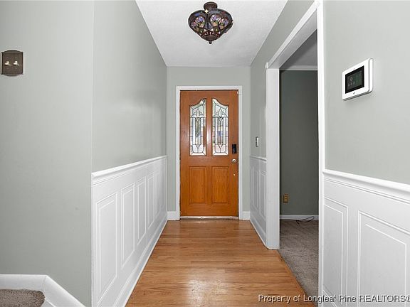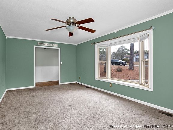 This 3-bedroom, 2-bath brick ranch is just minutes from the All American Gate at Fort Liberty. On a cozy corner lot, it offers the perfect mix of country feel and convenience. The 22x32 detached garage with its own drive has a great workshop space. Inside, you’ll find a warm and inviting layout, with a formal living room/flex space and a family room full of character wtih a brick wall, a masonry fireplace, and rustic wood beam ceilings. The eat-in kitchen has granite countertops and a cheerful view of the backyard. The sunroom makes an ideal spot for an office. The oversized primary bedroom is 23x12, has a walk-in closet, and private bath. 2 guest rooms share a bath. Step outside to the deck, where you can relax or entertain while soaking in the backyard’s serene, private feel. Welcome Home! Hone inspection on file, with some repairs in progress. House appraised w/previous contract. Lot size is based on tax records. AGENTS-not a member of MLS? Call Showing Time for access/disclosures.