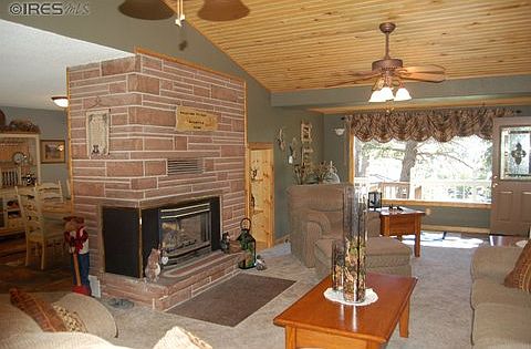 Huge price reduction from $549,000 to $395,000. Lake was swept away by 2013 floods. Now this 3 bed, 3 bath home is riverfront property. Lake may take 2 years to be brought back. Home has large back deck to view river, large front Trex deck with Bar-B-Que. Home has rec. room, family room gorgeous kitchen. Assoc. provides 2 tennis courts, ball field, volley ball court, basketball court, common pasture for 1 or 2 horses. All this surrounded by 1000's of acres of National Forest.