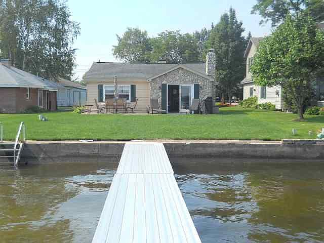 Very nice Lake front cottage. Open floor plan , wood burning fire place, wood flooring, remodeled bath, seawall, has unattached possible 2 car garage. Has brick patio flooring, and stone exterior front. Home is in excellent condition. Property is located on the main portion of Houghton Lake. Will SELL quickly.