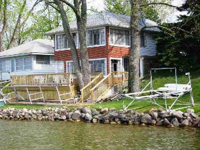 Awesome views and a sandy gradual beach. Some of the best Beach on the Lake! This home has 2 kitchens, 4 bedrooms and a wood burning fireplace. Owners have maintained extremely well over the years with most of the necessary updates. Large overzied attached garage for car and boat storage. New deck and new water heater 2006. All appliances and docks included. Most furnishings, pontoon with lift and misc items availabale for sale outside the sale of the Real Estate.
