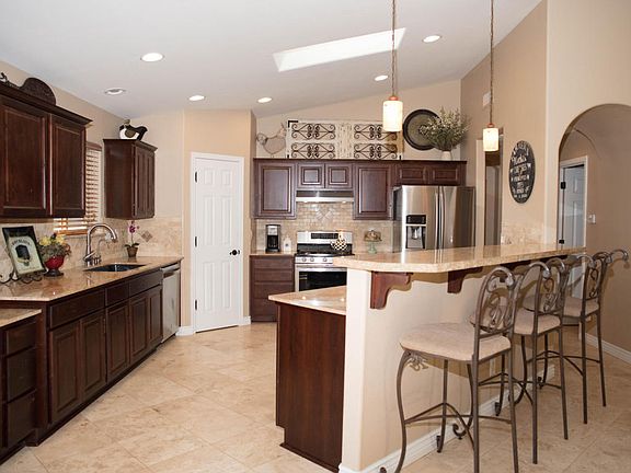 Beautiful home located in the highly desirable Rancho Vista Grande. Enjoy the stunning views of Granite Mountain and Arizona sunsets from your patio. This gorgeous home was recently remodeled and features travertine tile, granite countertops , quality Knotty Alder cabinets, spacious custom travertine shower in master with soaking garden tub and walk in closet, travertine shower in guest bath, fresh interior and exterior paint and new interior finishings. Large gourmet kitchen with chip face granite breakfast bar, stainless gas stove and walk in pantry. The living room has vaulted ceilings with a rock face gas fireplace for those cool Northern Arizona evenings. Large 3 car garage and two storage buildings for your hobbies. Exterior is fully fenced with two RV gates and landscaped with irrig