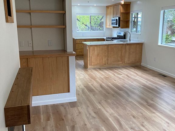 ** Newly remodeled. Comfortable living in historic downtown Livermore. Be the first to live in a remodeled 3 bedroom, 2 bathroom 1,200 sf standalone house on back of property on a quiet street in desirable Southside neighborhood. Brand new kitchen including all new stainless steel appliances and quartz countertop. Remodeled main bathroom with shower and refreshed hall bathroom with tub/shower. Main bedroom has large walk-in closet with cedar floors. Freshly painted and new plank flooring installed throughout rest of home. Great room with decorative fireplace and built-in shelving. Central heating and air conditioning. Dual pane windows and new window coverings. Welcoming front yard with low-maintenance artificial turf around brick stepping stones. Country feel to side yard with raised garden bed. Includes a one car garage for storage with laundry appliances. Driveway and street parking only. Walk to all the restaurants, shops, and entertainment venues that downtown Livermore has to offer. Bike trails, wineries, and the public library are close by as well. Easy commute to Lawrence Livermore and Sandia National Laboratories. Must see this Southside home with modern, updated amenities. *Parking on side driveway and on-street *One car garage is for storage only *No smoking *Renter pays all utilities *Yard is low maintenance but Tenants are responsible for sweeping of yard *Owner is responsible for larger maintenance and landscaping replacements as needed *Fireplace is decorative only