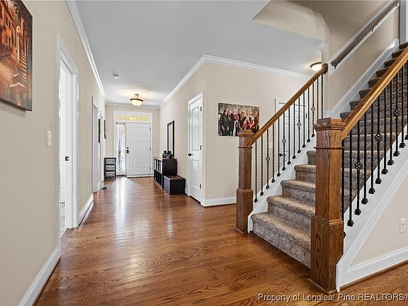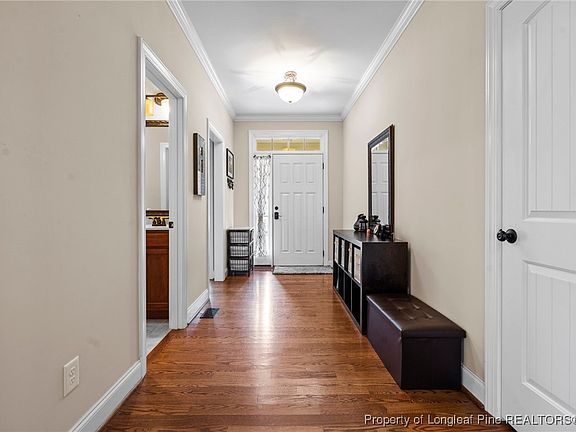 Welcome to this stunning semi-custom home, nestled in the highly desirable Anderson Creek Club. Featuring site-finished oak flooring, a striking stone fireplace, and custom cabinetry throughout, this residence blends comfort with upscale charm. The main floor opens with two spacious guest bedrooms with stylish shared bathroom. An oversized primary suite offers abundant natural light through large windows, creating a serene retreat. In the primary bathroom, you will find an oversized vanity, separate tiled shower and tub and a very generous walk in closet with custom shelving. There is also a private access to the laundry room from the primary bath.