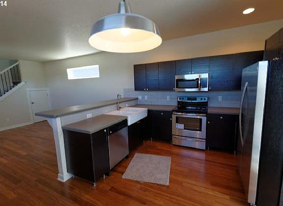 Great location /EZ commute!Features: High ceilings,Kitchen with Tile countertops,Hi volume exhaust fan,S/S Stove,Refrigerator&dishwasher, master suite with vaulted ceiling, Laundry room on same floor as bdrms, upgraded cabinets, WOW! Heat pump,washer,dryer included!Centrally located Staircase.Slider to patio & fenced yard. (Pics are of a model home)