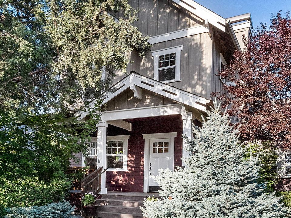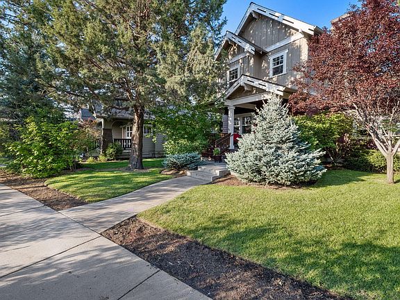 Located in the highly sought-after community of Northwest Crossing, close to numerous cafes, restaurants, and the NWX Farmers Market. This charming Craftsman-style house sits tucked away behind a lush landscape that adds to the home's appeal and privacy. As you approach the house, you are greeted by a large, covered front porch ideal for watching beautiful sunsets. Upon entering, the open space is bathed in rich natural light throughout the living room, dining room, and spacious open kitchen. The kitchen features ample storage, a comfortable breakfast bar, and a new dishwasher. The two bedrooms upstairs each have their own private bathroom. The primary bedroom includes vaulted ceilings and a peek-a-boo view of Mt. Bachelor. The private fenced backyard is perfect for entertaining with mature landscaping, hardscape area, and beautiful pergola. This picturesque property has a roomy one-car garage and the house has freshly painted interiors and exteriors.
