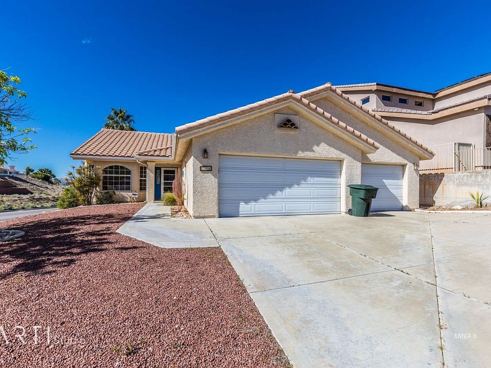 Looking high and low for a THREE bedroom and a THREE car garage? Well THREE is your lucky number! This home is located in a cul-de-sac on a corner lot with NO HOA fees! This home has been well maintained and cared for. All kitchen appliances included including recently purchased new refrigerator. If you don't need a third bedroom, one of the bedrooms is easily accessed off of the living room and would be a great den and/or office. Views of the Virgin Mountains in the Mohave Desert can be enjoyed form the front and backyard while taking an advantage the wonderful year round golf and barbecuing weather. Mesquite is located 82 miles northeast of Las Vegas and 39 miles southwest of St. George, UT. Perfect rural location with national parks, lakes, outdoor recreation, casinos, spas, and live entertainment. You can take in NHL matches and NFL games in Las Vegas and be back home tucked into your own bed that same night. Might as well as have your cake and eat it too! This is the home your looking for!