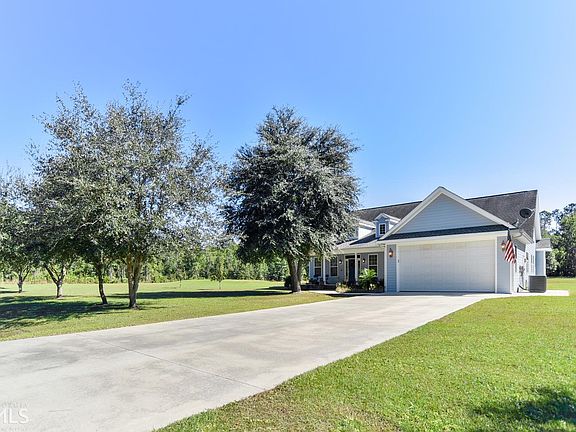 Immaculate 3 bedroom & 2.5 bathroom home in Woodbine! This home is one of a kind! Sits on 1.86 acres and has beautiful oak trees lining the front of the property! Newly painted hardie board siding! Custom built home has luxurious teak wood flooring, high trey ceilings, stunning coffered ceilings, recessed lighting, crown molding, gas fireplace and tankless water heater. This dream kitchen has custom built kitchen cabinets, an island with storage, breakfast bar, stainless steel appliances, tons of natural light, a pantry, warming drawer, wonderful natural lighting, & granite countertops. Owner Suite has double vanities, huge walk in closet, garden tub, tiled shower and your private entrance onto the screened in back patio. There is an uncovered patio area where you could set up your grilling station and picnic table while enjoying the outdoors. There are 2 outbuildings that will be convey with the property as well. Perfectly situated off exit 7 so it would only be 32 minute drive to Jacksonville International Airport & 39 minute drive to FLETC!