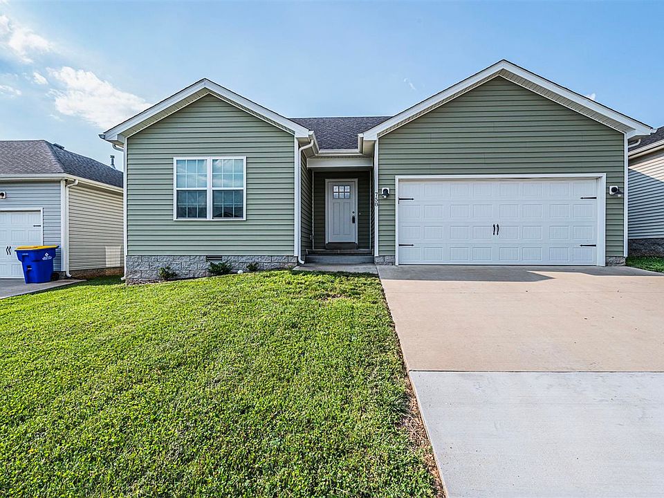 Located in the sought after Rivers Landing Subdivision. This spacious home offers an open floor plan with an extra large great room. White cabinets with granite and stainless appliances in the kitchen. Two good sized bedrooms with hall bath in front. The primary suite is located off of the great room, laundry room located off of the garage and a patio in back. Low maintenance LVT tryout. This home could be yours and is move in ready. Call today!