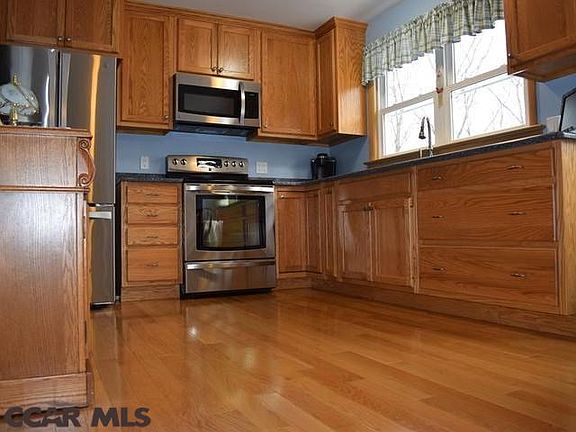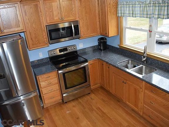 Very well defined ranch home with upgrades you'll love! Shunk kitchen with quartz countertops from CSI, hardwood floor throughout kitchen, dining area, living room, hall, and Master Bedroom all in pristine condition. New stainless steel appliances that make the kitchen "pop.' Eat-in kitchen and large living room to make this one-floor living so convenient and enjoyable. Walk-up attic to a large attic with 8 1/2' ceiling space for lots of storage or many other options. Large flat lot (.35 acres) with detached garage, long paved driveway, porch, and space for gardening. How happy would cute and affordable make you? Call today and BE HAPPY! Part of property in FEMA flood zone; house is not. Flood certification shows no flood insurance required.