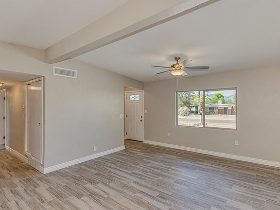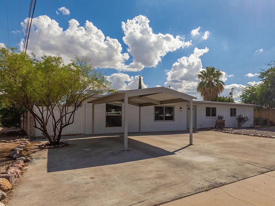 Stunning single-story 5 bedrooms, 2 baths with 1,700+ sqft of living space and covered carport in East Tucson. Beautifully redone! Flowing wood-look flooring, plush carpets in the spacious bedrooms, neutral paint palette, recessed lighting and ceiling fans. Galley style kitchen hosts crisp white cabinetry and polished counters. Seller will provide new stainless steel appliances including gas range, OTR microwave & dishwasher with accepted offer. Roomy master includes private ensuite. Ample backyard equipped with storage shed, low care landscaping, and gated diving pool. This one won't last long, schedule a showing today! Agent/Owner.