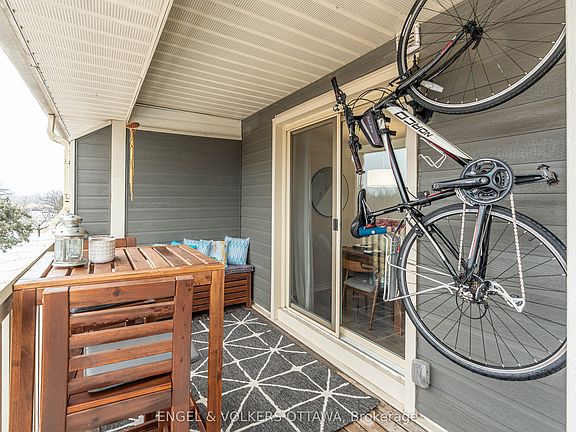 Perfectly positioned overlooking green space and scenic walking trails, this stunning 2-bedroom stacked condo offers the ideal blend of style, comfort, and privacy. Start your day with a peaceful coffee or unwind with a glass of wine on your private balcony. Step inside to discover stylish vinyl plank flooring and a bright white renovated galley kitchen featuring a cozy eat-in nook with built-in cabinetry for extra storage. The spacious living room features a charming fireplace and large windows that flood the space with natural light. Adjacent, is a formal dining room, complete with elegant lighting. The main level also includes a convenient powder room. Upstairs, you'll find two generously sized bedrooms, a full bathroom, and a laundry room. The primary bedroom is a true retreat with custom built-in cabinetry and a walk-in closet. This beautifully updated condo has everything you need. Style, function, and a prime location close to nature. Dont miss your chance to call it home. Conveniently located near top-rated schools, transit, shopping, and grocery stores with the Ottawa River and scenic NCC trails just steps from your front door.