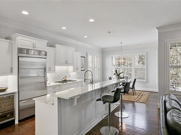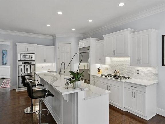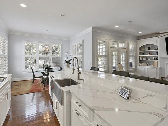 In sought-after award-winning Morris Brandon school district. This fabulous home is in a boutique community near Bitsy Grant Tennis Center, Bobby Jones Golf course, the Beltline, shopping, and dining. The living area overlooks a quiet tree-lined street that leads to private greenspace. The main floor flows effortlessly from the fabulous dining room that seats 12, into the living area and kitchen. The kitchen is a chef's dream - outfitted in white cabinetry, and stunning quartz countertops with Kitchen Aid appliances. The breakfast room is sunny, framed by large windows overlooking Springlake Park. The island seats 4 comfortably and opens to the keeping room and private covered terrace. The wood-burning fireplace is the heart of the room and is surrounded by custom bookcases. The upper level features a spacious owner's suite with ample room to accommodate a very comfortable sitting area. Additionally, on the upper level, there are 2 generous bedrooms with large walk-in closets and a Jack and Jill bathroom. The lower level has a living room, private sleeping quarters, a full bath, and a 2nd covered terrace with a private rear entrance through the garden. The home is equipped with built-in speakers, elevator ready, Tesla/EC charging station, and a whole house generator.