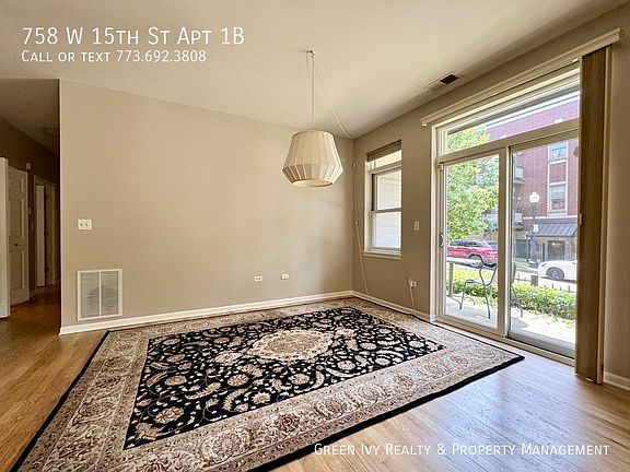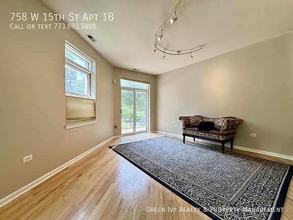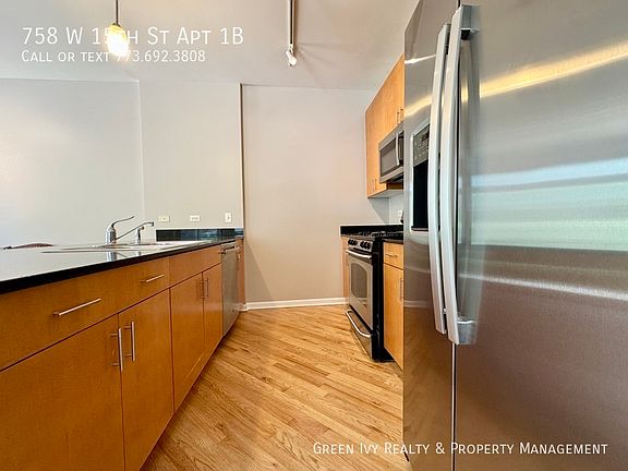 Lovely newer construction condo in the heart of University Village. Unit features large combined living room and dining room, boasting a superb kitchen with SS appliances and granite counters. Hardwood floors, master bedroom w/private double-sink vanity bathroom, in unit laundry, 2 private patios, and central heat and A/C. 1 outdoor parking space is included! Cats are welcome with a $250 pet fee. Available Now! Green Ivy Property Management