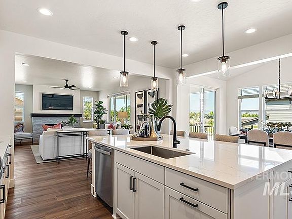 UNDER CONSTRUCTION - The “Hemingway” by Richmond American Homes. The main floor of the inspired Hemingway plan showcases a convenient powder room, a spacious great room and a well-appointed gourmet kitchen with a walk-in pantry and a center island. This level also includes a living room and an open dining area with an upgraded sunroom and covered patio. Upstairs, you’ll find a loft, laundry, a shared bathroom and four bedrooms, including a lavish primary suite boasting a roomy walk-in closet and a private deluxe bath. You’ll love our professionally curated fixtures and finishes. Plus 9' ceilings and tankless water heaters, with front and back landscape and sprinklers along with full backyard vinyl fencing INCLUDED! Stop by our furnished model home 3286 S Grenze Way, Meridian, ID 83642 and ask about our special offers. Restrictions apply. PHOTOS SIMILAR