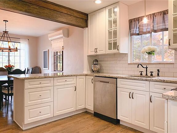 758 Washington Drive stuns with its 1940's flair. A recent renovation that modernized the main floor continues to capture the home's original charm. The kitchen features full-height, solid wood cabinetry, granite countertops, a subway tile backsplash and stainless appliances. Opening into the adjacent dining and living rooms, the kitchen's new solid oak flooring seamlessly blends into the original, with all professionally stained and refinished. A wood-burning fireplace anchors the living room, while new French doors lead to a fully enclosed all-season room, complete with new lighting, windows, flooring, exposed beams and a propeller fan. A first-floor bedroom easily doubles as your home office, while the second floor boasts two full bedrooms and a full bath. An expansive basement provides plenty of storage and workshop space. Original stained glass, doors, and molding complete this home. Situated in the North Hills SD and within minutes of I-279, I-79, McKnight Rd. and Rt. 19.