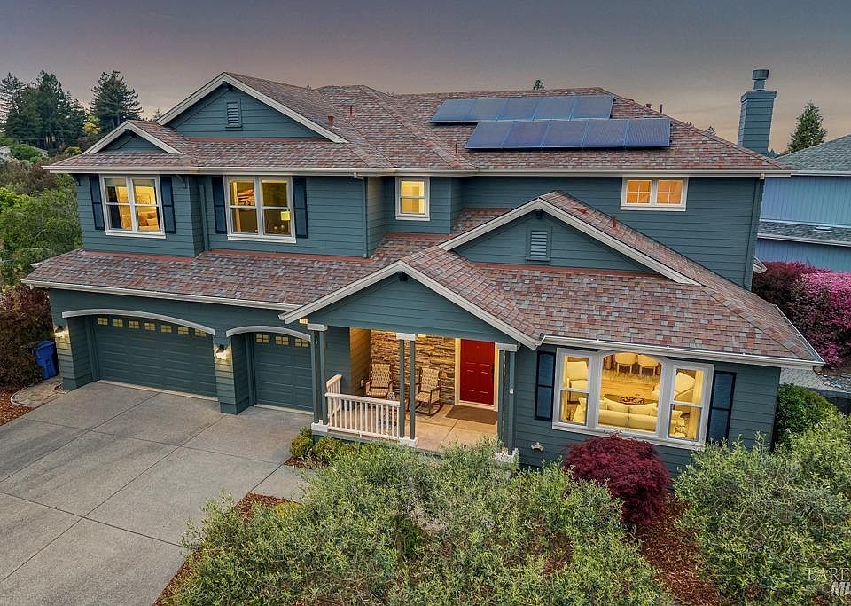 Amazing opportunity for this 5-bedroom, 3,065 sq ft walk to town home in a coveted neighborhood. Owned solar with battery backup. Two ensuite bedrooms great for inlaws, while the open layout and vaulted ceilings invites gatherings. Outside, intentional landscaping with flowering plants and low-maintenance mulch surrounds raised garden beds, mature olive and lemon trees. A three-car garage with EV charger. This sustainable gem weaves sophistication with Sebastopol's soulful allure. Welcome Home!