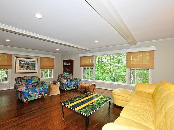 4/5 bedroom Ranch home on 2.3 rolling, wooded acres. Spacious room sizes w/6 panel doors & hardwood flrs. Huge living room w/gas log frplc, great for entertaining. Relax in the light, bight sunrrom & watch the deer graze. Four bedrooms on main level, one w/prvt bath. Master suite w/gas frplc, whirlpool tub & steam shower, Updated kitchen features 6 burner Decor range, granite counters, and sub-zero fridge. Baths have also been updated. Finished lower level w/exercise room, huge rec room & more.