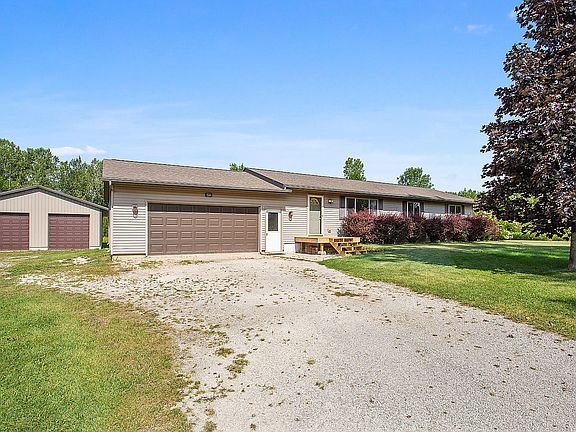 Secluded, 3 bedroom, 1.5 bath ranch home with about 10 acres. Newer home with just under 1400 square feet, low maintenance exterior, first floor laundry and an additional 30 x 50 pole building with two 10 ft overhead doors and one 9 ft overhead door. Open concept kitchen and dining area with breakfast bar. Enjoy the great outdoors with your spacious and private deck.