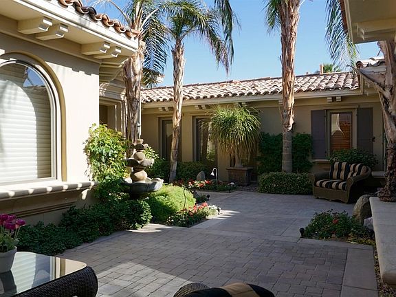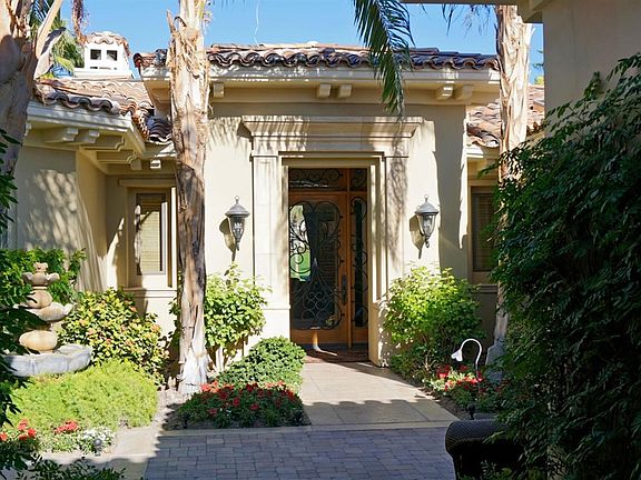 This spectacular home at Toscana overlooks lush golf course and lake views. Italianiate architecture graces this home that showcases an intimate courtyard with a tiered fountain and fireplace. The open plan features a wide array of stunning custom details including stacked stone fireplace surround, ceiling beams, beautiful stone flooring, finely crafted cabinetry, intricate tile details and hand trowelled walls. The outdoor entertaining pavilion offers an infinity edge custom pool and spa with dramatic firepit, built in barbeque and covered verandas. The gourmet kitchen features a large island and Sub-Zero and Wolf appliances. The relaxing master suite includes a fireplace, stacked stone accent wall and luxurious master bathroom . Guests will enjoy the private detached guesthouse with sitting room, guest bedroom and en-suite bathroom as well as the guest room with en-suite bathroom in the main home. A home office completes this wonderful home.