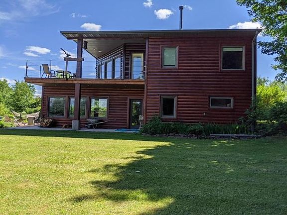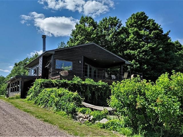 #485B Sweeping panoramic views! Unique hilltop home on 10 acres. Everything about the property, especially the numerous windows, cater to it's breathtaking setting. On the lower level of the home is a spacious living room, with wood burning fireplace and patio doors that lead to an amazing concrete patio with a fire pit. A bar/rec room, guest bedroom with walk-in closet and a full updated bath. Upstairs you will find a bright, functional kitchen with updated finishes and stainless appliances. The dining area and den/sitting area feature a free standing wood stove and access to the 400'+ deck from which you can see the rolling hills for miles. The master ensuite boasts a walk-in closet, a second spacious closet and a large bath with a soaker tub. Many updates have taken place over the last 4 years including some exterior concrete walkway and patio areas, exterior stain and more. The property also features a 1776', 2 car, detached, insulated garage with workroom and storage rooms.