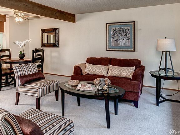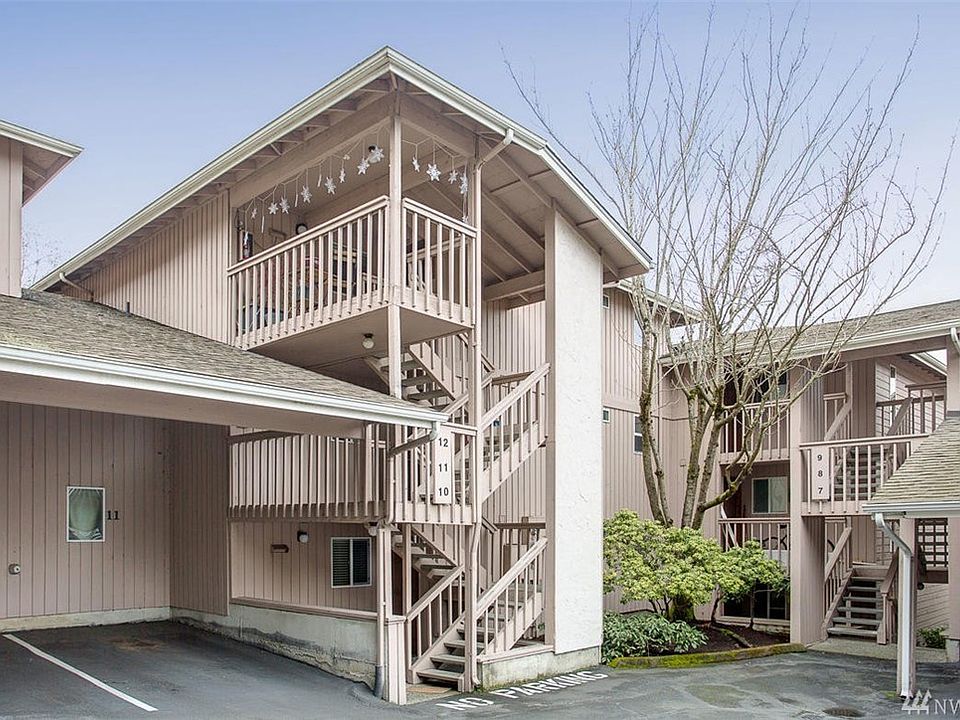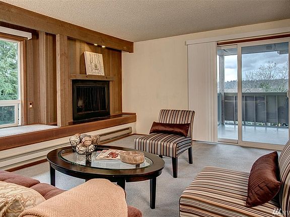Immaculate condition in Gull-Val with territorial views. Parquet entry, galley kitchen with all appliances include. Large dining area with eating bar & ceiling fan. Generous living room with window seat and fireplace and sliders to covered view deck with storage. Hall bath with tub and stacked washer/dryer in closet. Nice sized master with large windows and adjacent bath. Plenty of guest parking-and your own reserved spot! Excellent, close in location with access to shopping & Marymoor Park.