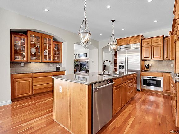 Situated on a quiet cul-de-sac in the highly sought after Saddle Brook neighborhood lies this magnificent home that epitomizes elegance and tranquility. Situated on a sprawling acre backing to Open Space, this estate boasts an aura of sophistication and charm, offering an idyllic retreat from the hustle and bustle of everyday life. The heart of this custom home lies in its chef’s kitchen, where culinary enthusiasts will delight in the top-of-the-line Thermador appliances, custom cabinetry, and expansive island perfect for both casual dining and entertaining guests. Cherry hardwood floors run throughout the home adding warmth and class. The other living spaces are equally impressive with 20’ soaring ceilings, formal Living and Dining Rooms, Family Room, two Offices, Game Room, Exercise Room, Wet Bar, and multiple lounge and sitting areas each thoughtfully designed to encourage relaxation and socialization. The estate offers five Bedrooms including two Bedroom Ensuites; one located on the main level. The Primary Bedroom Suite provides a lavish retreat, boasting a spa-like bath complete with soaking tub, walk-in shower, and dual vanities—all designed to pamper and indulge the senses. The professionally designed grounds of the estate are a veritable paradise, with sprawling lawns, meandering pathways, and lush foliage creating a sense of serenity and seclusion. A tranquil pond, with babbling brook and waterfall, serves as the focal point of the outdoor space, offering a peaceful oasis. Raised garden beds with separate irrigation are perfect for growing your own vegetables for that farm-to-table experience. There is also a built-in outdoor fireplace, fire pit and a Hot Tub which add to the enjoyment of the outdoor spaces. Whether enjoying a leisurely stroll through the gardens, hosting a summer soirée on the patio, or simply soaking in the breathtaking mountain vistas, every moment spent in this extraordinary estate is a celebration of the beauty of Colorado living.