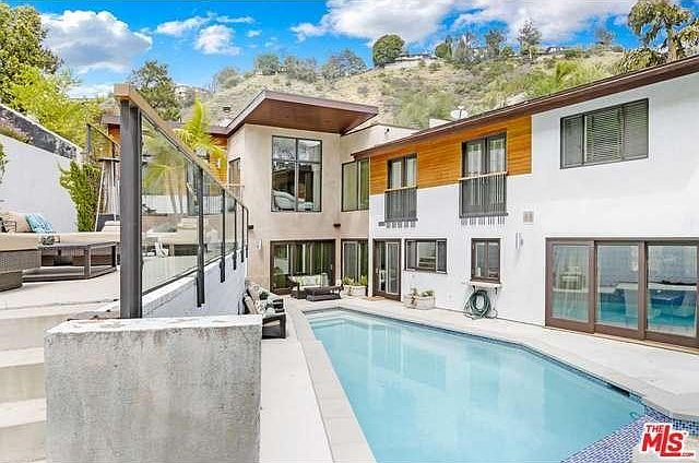 OVER 1.5 ACRES OF BACK YARD/PATIO!Celebrity neighbors! Entertain, Roam, or just chill. SELLER WANTS IT SOLD! LOOKING AT ALL OFFERS! Cool,Hip,Sexy,Sophisticated and Contemporary Hollywood Hills home boasting 5 beds and 4 baths. Entertainers dream home with floor to ceiling double wide doors for indoor/outdoor seamless flow. Elegant and Expansive Master suite with fireplace, sitting area and huge walk in closet. Canyon and pool views from most every room. Master bath with walls of slate. Second en-suite master plus 3 more bedrooms. Modern kitchen with custom made cabinets, Spanish gold marble counter tops and newer appliances. State of the art media room. African mahogany and slate flooring throughout. Newly refinished pool and solar panels. Plenty of parking. Minutes from West Hollywood, Hollywood, Beverly Hills and down town LA.
