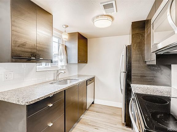 Beautifully Remodeled 2 Story Condo in the heart of Commerce City!! Gorgeous kitchen with granite countertops, stainless steel appliances, newer cabinets. Spacious dining area. Kitchen pantry. Cozy family room with fireplace. Upstairs features 2 bedrooms and a fully remodeled bathroom. Gleaming laminate wood floors throughout! Enjoy the summer BBQ's on the outside fenced in patio! Newer lighting fixtures, newer paint, newer water heater. Plenty of storage space throughout the home!! Close to schools, highways, restaurants, soon to be light rail and more! Don't miss out on owning this WONDERFUL home!!