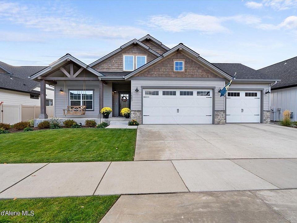 Experience splendor & warmth from this nearly new northwest-inspired modern farmhouse with lavish upgrades throughout. Located in desirable Coeur d'Alene Place, this rancher with bonus room offers 4 bedrooms, 3 baths within 2,379 sq/ft & a 3-car garage. Step through the entryway to an open and inviting living room, dining and kitchen with beamed, vaulted ceilings. The light-filled kitchen offers high-end amenities including a 5-burner Bosch gas range/oven, timeless quartz countertops, farm sink and walk-in pantry. The wine fridge & Samsung refrigerator will remain. The backyard oasis won't disappoint with an extended pergola patio offering a stone fireplace, pavers, built-in blackstone grill and tranquil sounds from the water feature. This home is a showcase of casual modern living, offering not only elegance and style but also the comfort and convenience of a newly upgraded space. Home is located with close proximity to three schools, parks & green spaces, walking paths, shops and restaurants.