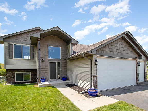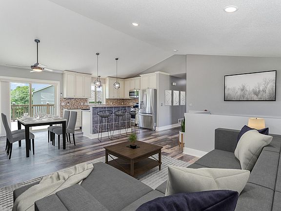 Exceptionally maintained 1 owner home. Large corner lot—backyard fully fenced for your pets. Sun filled open concept with vaulted ceilings & large living rm. Kitchen has granite counters, quartz center island/snack bar, tiled snack bar wall. Tile backsplash, stainless steel appliances, granite countertops. Separate dining area leads to huge deck-overlooks back yard/pond. Tiled stair risers at entry. Double vanity in main bath. 3 bedrooms on main level. Primary suite has vaulted ceilings, ceiling fan and huge walk-in closet. LVP flooring on main level. Lower-level walks out to back area has extensive family room with space for a gaming area + media/entertainment area, 4th bedroom with LVP flooring and 3/4 bath with glass shower. Numerous storage areas. Beautifully finished laundry rm with built in cabinets. Large 3 car garage and extra parking spot for boat or trailer. Over 1/3-acre lot. Move in ready. Many updates and improvements.