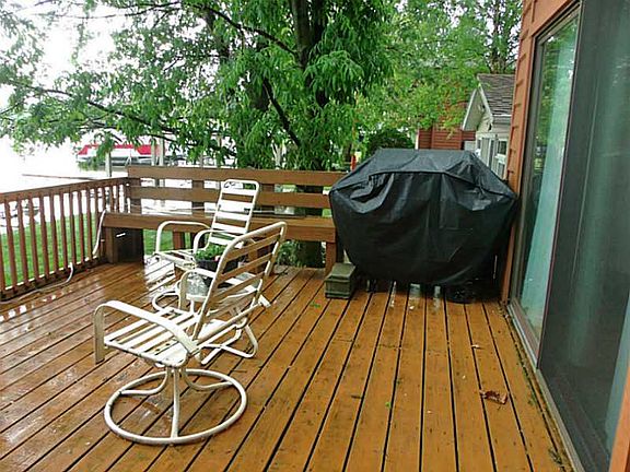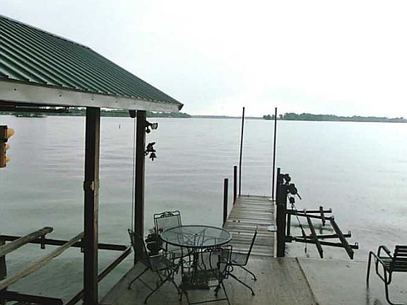 Enjoy an open water view and location. Covered boat dock with lift, Extra dock space with individual sea craft lifts. Dramatic stone fireplace. The large deluxe master suite added 1997 has magnificent lake views, plus an on suite master bath with whirlpool tub and walk in shower, Large walk in closet. Study overlooking the lake is used as third bedroom. New metal roof 2009. Exterior painted 2013. All appliances remain. Fully equiped kitchen. Oversized 30x40 garage and extra concrete parking is located across the street on 59x75 lot included in sale. 2nd parcel # is 510321221001002. This can be a full time home or a retreat. Lots of concrete parking.
