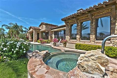 Location, location, location! Stunning SOUTH facing views overlooking the Santa Rosa mountains, double fairway, & lush landscape in one of the most exclusive developments, TOSCANA Country Club. Newly REDESIGNED & DESIGNER FURNISHED w/elegance & class. Situated on a private, fully developed cul-de-sac w/no golf cart path nearby. Enter to a large courtyard w/a grand courtyard fireplace. This home offers sheer beauty w/striking finishes incl. salt water pool w/stone, floor to ceiling glass, five roaring fireplaces, gorgeous built-in cabinetry, stunning chandeliers, elegant draperies, motorized awnings, Wolf range & appliances including three dishwashers, warming drawer, vegetable sink, & wet bar. Enjoy the master suite w/spectacular views offering dual bathrooms featuring an spa-like shower. Guests will appreciate the two bedroom casita suite w/kitchenette & fireplace. Four car garage for specialty cars & golf carts. Truly a remarkable home. Golf membership not a requirement.