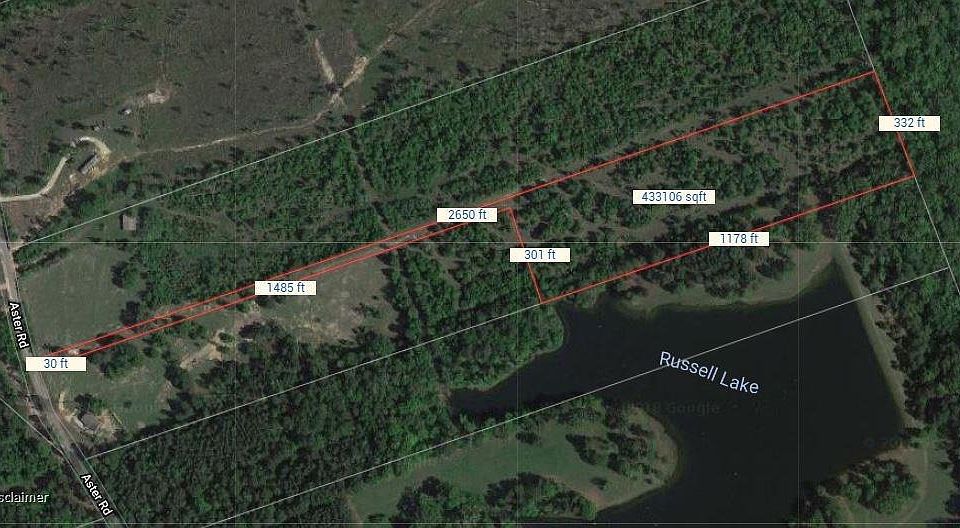 There is a easement access from Aster Rd to property which is heavily treed and access to Russell Lake from property. Agent or buyers are responsible for verifying all information.