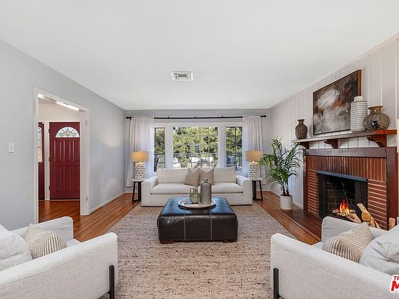 Discover a haven of tranquility in this sun-drenched 4-bedroom, 2-bathroom home nestled within the serene embrace of Tujunga. Sitting on an expansive 11,783 square foot lot, this 2,083 square foot residence offers the perfect blend of modern amenities and cozy comfort. Step inside to be greeted by a spacious living room adorned with a cozy brick fireplace, where you can unwind and soak in the breathtaking vistas of the surrounding mountains. The recently remodeled kitchen is a culinary enthusiast's dream, boasting sleek quartz countertops and high-end stainless steel appliances. and tons of cabinets. The kitchen leads into the family room, both of which have newer flooring and newer windows. Prepare gourmet meals with ease and entertain guests in style. A main-floor bedroom provides convenient access for guests or family members. The primary suite is a true sanctuary, featuring a custom walk-in closet designed to indulge your wardrobe desires. The third bedroom, thoughtfully equipped with two built-in desks and abundant shelving, as well as spaces for two twin beds. With an abundance of storage space throughout the home, you'll have ample room to keep your belongings organized and clutter-free. After a long day, unwind on the expansive front deck, where you can savor the refreshing mountain air and watch your children play in the nearby McGroarty Park. The serene backyard is an oasis of relaxation, featuring fruit trees and several inviting sitting areas where you can enjoy peaceful moments amidst nature's beauty. This exceptional property is equipped with eco-friendly features, including new solar panels (fully paid off), a newer heat pump and HVAC system, copper plumbing, and a 200 AMP electrical panel. Live a peaceful life in this lovely home, where every detail has been thoughtfully curated to provide an unparalleled living experience. There is a two car garage and enough room for two cars on the driveway made of beautiful pavers. Schedule your private tour today and discover your new home, just in time for the holidays! The fireplace is for decorative purposes only.