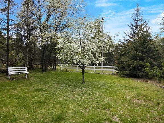 Very well kept home on 10.01 acres. This home has a 9x13 covered porch at the entrance that would be wonderful to hang out and be one with nature. Very private setting with some nice landscaping. Home has 3 bedrooms and 2 bathrooms. Kitchen is spacious with a morning room/ dining room attached. Primary bedroom will easily fit your king size bed and it has a nice sized private bath . The second bedroom has it's own walk-in closet! Living room has an electric corner fireplace. This home has Fiber internet so no problem working from home! Amish built 1.5 car detached garage and a very nice two track that you can drive to the back of the property no problem. Years ago this was a Christmas tree farm so you will see evidence of that. It's a great house so schedule your showing today!