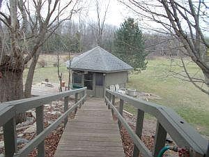 Quaint, modern, comfortable, country and much more. This home has it all for a family or retirees. Located on your own hunting property with 10 acres and half wooded. The pone and gazebo are great for kids. The efficient kitchen has granite and top quality appliances, a confection oven, subzero refrigerator, top of the line dishwasher and built in desk. The huge deck is on the side and wraps around the back. The extra toilet and shower are located in the furnace room, no need to go into the house. Beautiful great room with vaulted ceiling and many glass doors and windows with a view. Pretty and efficient. Check it out!
