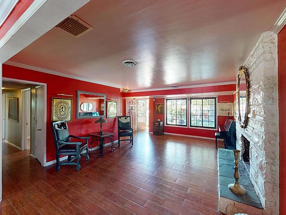 This hidden gem, centrally located in Yucca Valley, is a peaceful place to relax in the desert. This 3 bed/3 Bath home has 2,028 SqFt and sits on a lot size that is approximately 18,600 SqFt, mostly enclosed by a block wall and an electrical gate to allow easy access to the driveway where you can park about 4 cars, as well as an RV parking area in the back. This precious home features a sparkling private pool surrounded by a spacious cool decking area for summer days, and 3 cozy fireplaces in different spots of the house for winter days. Both are perfect for a family gathering or for parties. This home is well-kept, keeping the unique essence of 1967. The main bedroom has its own fireplace, bathroom, and walk-in closet. The living room has majestic views of the front yard, which showcases an enchanting tree that provides shade throughout the summer and invites the sun back in the winter, not to mention this view being framed by mountains. The family area overlooks the pool as well as the dining room and kitchen. In the dining room, the French doors open up to the back patio and pool area. The retro kitchen is equipped with stainless steel ovens, a gas stove, dishwasher and a refrigerator. The garage area is currently being used as a library and lounge. This charming home offers a few covered patios, an outside fireplace, an artsy and secluded side yard, and many other areas to relax in the roomy front yard. The house has had some upgrades: In 2005, they installed a new roof and evap cooler. In 2024, the chimney plate was replaced, one quarter of the C roof by the chimney was redone, and a new Pentar pump and chlorinator dispenser were also installed. In 2022, the solar system was installed. This home is close to restaurants, stores, and other town-life events like the Gubler Orchid festival. Additionally, it lies between the lush Palm Springs, Joshua Tree National Park, and neighboring cities. Come see this charming home and make it your own!