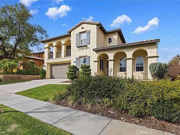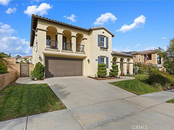 For those who seek tranquility and beauty, this stunning Mediterranean-inspired home is located in the gated community of The Retreat in Corona. With high ceilings, lots of natural light, and large living spaces, the home is designed for entertaining and multi-generational living. Enter a formal living room and formal dining room separated by a serene courtyard. A dramatic staircase, adorned with beautifully designed wrought iron, leads to a bright and airy bonus room with built-ins, and to a balcony with mountain views. There are four spacious bedrooms, one on the main floor, three with en-suites, each with a view of the mountains. The primary suite is a true retreat, featuring a private balcony, large closet, jetted soaking tub, and dual vanities. For informal entertaining, the spacious kitchen offers granite countertops, tile backsplash, a breakfast nook, center island, walk-in pantry, desk and GE Monogram appliances, including: 6 burner gas cooktop, refrigerator, double convection ovens, dishwasher, and microwave oven. The kitchen opens into a large family room with a fireplace. Both rooms overlook the home's backyard garden and covered patio. This special home also includes travertine, hardwood flooring, a laundry room, lots storage, and - bonus - a four car garage.