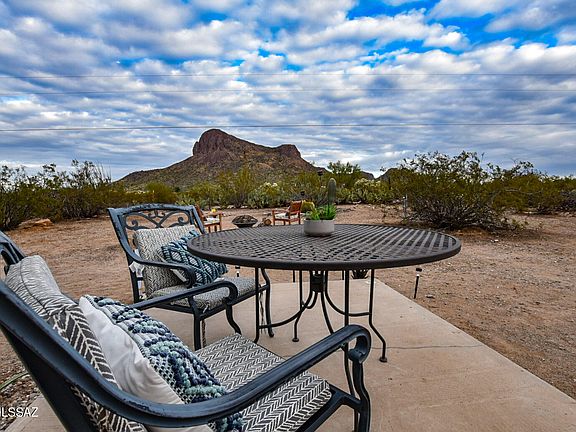Guests of this turnkey Airbnb from around the world have described this home as ''magical' and ''serene''. Located just steps from the Saguaro National Forest with in your face panoramic views of Panther Peak and stunning views of the mature saguaros right outside the front door. This is your opportunity to own a perfect winter get away or turnkey BnB business. Situated on a prime acre of land, this home also includes a 50 amp pedestal, water and septic connection to accommodate your RV traveling guests. Sellers monthly utilities plus taxes and insurance average $265 a month.