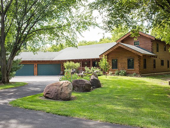 Riverfront log home on the Crow just minutes from Maple Grove & Plymouth in Greenfield MN. Gorgeous rare opportunity to own this river-front log home with over 4,000 sq ft, 4 car heated attached garage, pole barn and privacy within 45 minutes of Minneapolis.