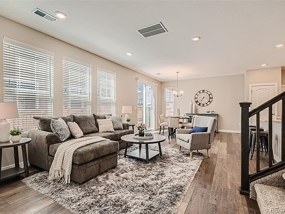 Like-new, move-in ready townhome in Heritage Eagle Bend with 2 bedrooms, a loft that can be a third bedroom, and a dedicated office. Open floor plan with lots of natural light. Main floor kitchen has stainless appliances, quartz countertops and a large island. The kitchen flows to a dining room and large family room. The main floor also has a office and a powder room. Upstairs is an open loft area, a primary bedroom with ensuite bath, a second bedroom and a full guest bath. Large two car attached garage and nice fenced patio area. Convenient location close to E-470, DIA, Southlands Mall and a Super Target. Cherry Creek schools.