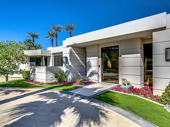 Located in the exclusive Eldorado C. C. is this magnificent custom Cody designed home perfectly situated on the 4th fairway at the end of a cul-du-sac. The living space was expanded to 6,208 sq. ft. and remodeled, with tasteful finishes, for a perfect place to entertain family and friends or a peaceful retreat. The home includes bar area and sun room with ceiling and walls of glass overlooking the outdoor pool, spa and waterfall. Spacious formal living room with a gas fireplace has beautiful views of the fairway. Enormous great room includes family room, dining room and a chef's kitchen with all high end appliances, 2 ovens, 2 dishwashers, large island and plenty of counter space and storage. Beautiful Cove Mountain views from the kitchen and dining rooms. There are 2 master suites on either side of the house, 3 guest suites and an additional bedroom and bath off of the garage. There are plenty of patio spaces off of the master bedrooms, bar area and living room with BBQ bar, dining al-fresco, lounging at the pool and fire pit for those cool evenings. Other amenities include indoor laundry room and 2 car garage.