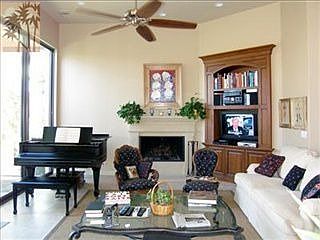 A dramatic arched entry leads you to a welcoming courtyard with a lovely Spanish fountain and detached Casita. Upon entering the home, one is attracted to the wonderful flow of the kitchen, greatroom and dining areas as well as the views from the expansive doors and windows. This four bedroom 4.5 bath home is graced with many upgrades indoors and outdoors. Views of the lake and snow-capped mountains create a wonderful atmosphere for lounging and sunning as well as entertaining family and friends. Don't miss this true gem in the prestigious Toscana Country Club in the heart of Indian Wells. Home sold unfurnished. Brokered And Advertised By: Toscana Homes, Inc. Listing Agent: Judith, Linda and Jamie