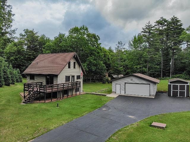 What a great location for this year round home - located about half way between Woodruff and Lake Tomahawk. Access to the snowmobile trail is just down the road to Hwy 47 and Woodruff town roads are open to ATV's. The Lake Tomahawk boat landing is only a few miles away along with thousands of acres of public land nearby. The home features 2BR/2BA with two bonus rooms waiting for finishing touches in the upper level to add to your living space. Amenities include natural gas, patio doors in the living room to a large deck, spacious yard, blacktop driveway, low maintenance metal siding and multiple garages for plenty of storage. The interior and exterior have been well cared for over the years. High speed internet and Lakeland Cable are available (buyer to verify both). Great value for a year round home!