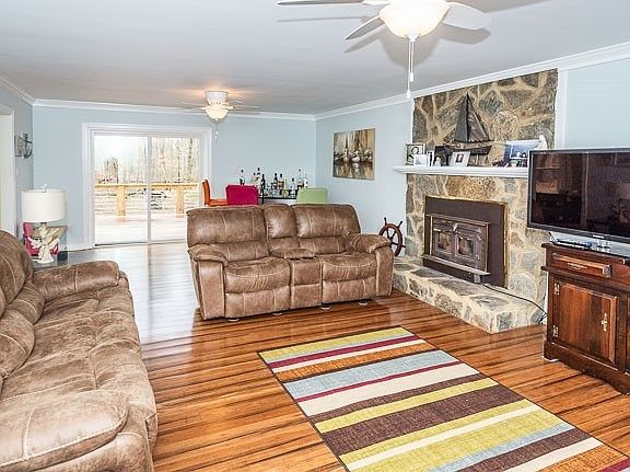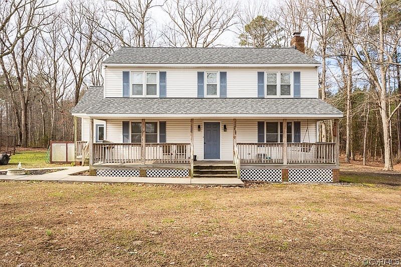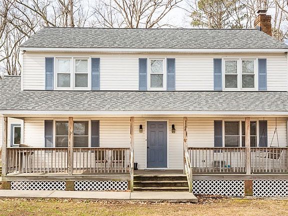 Charming 2-Story Colonial with 3 bedrooms, 2.5 baths, 2,110 SF and sitting on a large level 1-acre lot with a private backyard. The exterior offers maintenance free vinyl siding, 5-year old dimensional roof, large country front porch, replacement windows, deep well with water filtration system, and newer large rear deck overlooking the private rear yard! The interior features a spacious family room with bamboo flooring, crown molding, dual ceiling fans, and stone fireplace with wood stove. The bright eat-in kitchen has stainless steel appliances, gas cooking, new vinyl floor, and breakfast nook with bay window. The first floor also has a formal dining room with hardwood flooring & crown molding and a large mud room with additional storage space. Head to the 2nd floor to find the Owner's suite with carpet, ceiling fan, walk-in closet and en suite bath with large single vanity sink & tub/shower combination. The additional two bedrooms are nicely sized with carpet, ceiling fans and large closets. Enjoy tons of storage space with the walk-up attic! This home is just waiting for you to move-in! Great location near interstates, shopping & more! Home has a shared driveway.