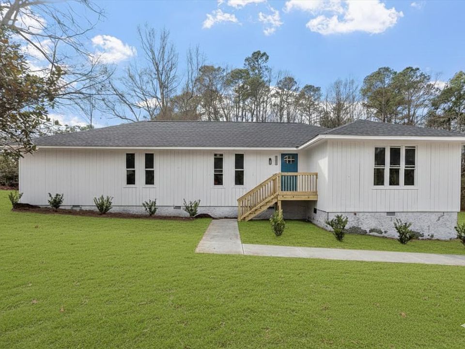 This updated ranch home features new engineered wood floors throughout the main living areas and new plush carpet in the bedrooms for comfort and warmth. The renovated kitchen showcases new shaker cabinets, quartz countertops, a stylish tile backsplash, and stainless steel appliances. Both bathrooms have been thoughtfully upgraded with custom dual vanities, tile floors, and stunning custom tile showers — including an oversized owner's shower with dual shower heads for a luxurious spa-like experience. Fresh interior and exterior paint add to the home's move-in-ready appeal. Step outside to a brand-new back deck overlooking a private, wooded backyard — the perfect setting for relaxing or entertaining. With modern updates and serene surroundings, this home offers the ideal blend of style and comfort.
