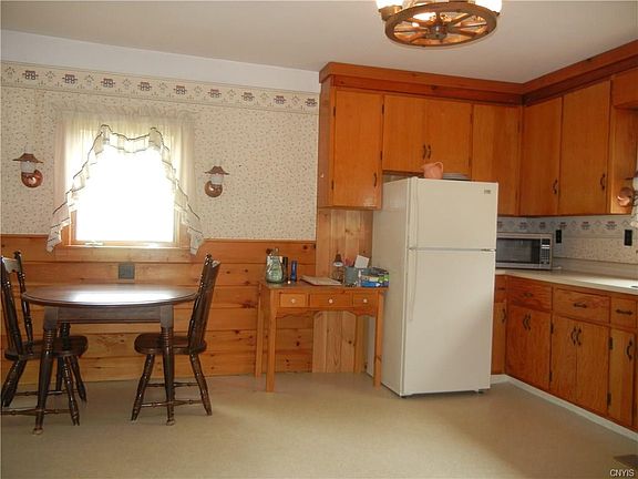 Priced below accessed value ( 125900) this home has 1878 sq ft of living space. A large country kitchen has an arch way that opens up the the spacious dining room that is great for large gatherings. Off the dining room is a cozy den that offers a brick fireplace and a large picture window that allows great natural light. There is a door that leads out onto the front porch from there. Sliding french doors open the den up to the living room. A full bath and laundry room complete the first floor. Upstairs you will find 3 spacious bedrooms, a walk in closet in the hallway, and a full bathroom. All this sits on a great village lot with a 1 stall attached garage. There have been many updates over the years. The garage roof is 1 year old, a natural gas furnace, electrical entry, and windows to name a few. Move in ready and waiting for the new owner to add their touch.