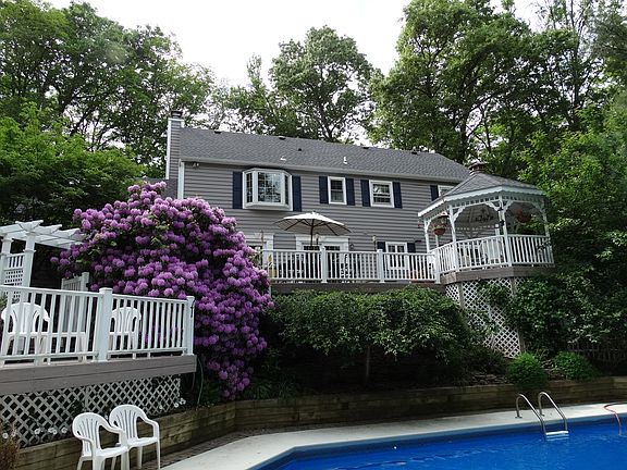 Spectacular and updated in sought after neighborhood. Renovated kitchen w granite and center island. Master bedroom w sitting room and expanded bath. Outdoor entertaining space w pool, deck, gazebo, gardens Private 1.62 acres in convenient neighborhood. Spacious formal living room w decorative trim. Elegant formal dining room w gleaming oak flooring. Renovated eat in kitchen w center island, granite counters, newer stainless steel appliances, decorative tile and pantry. Family room off kitchen w fireplace. Master bedroom w large sitting room/office/gym. Lavish master bath w jettted tub, stall shower and custom cabinetry. Big bedrooms w ample closets. Finished basement. Amazing lushly landscaped, outdoor entertainiing space-gazebo, deck, in-ground pool. Fantastic location near shopping and commuting routes. Great schools.