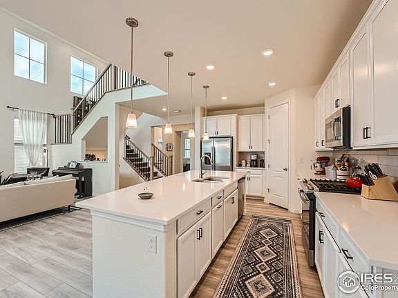 Welcome to your stunning home in Erie, Colorado! Step inside to a welcoming embrace of lofty vaulted ceilings, abundant natural light and a gas fireplace at the heart of the home. As you explore the spacious interior, a comforting sense of home fills every corner with coziness and tranquility. Amidst this charm, discover modern luxury in the chef's kitchen, featuring quartz countertops, top-of-the-line appliances, a walk-in pantry, and an expansive island for culinary adventures. Additionally, the mudroom has a modern farmhouse appeal with reclaimed barn wood and provides cubbies for effortless organization, while a versatile office nook caters to personalized usage. With one bedroom conveniently located on the main level and four more on the upper level, this layout ensures ample flexibility to meet your family's evolving needs. Outside, every detail of the redesigned outdoor living spaces invites you to unwind and enjoy. Discover raised garden beds ready for planting and a custom-built chicken coop that adds a touch of rustic charm to this suburban oasis.Prepare to fall in love with your new Home Sweet Home...