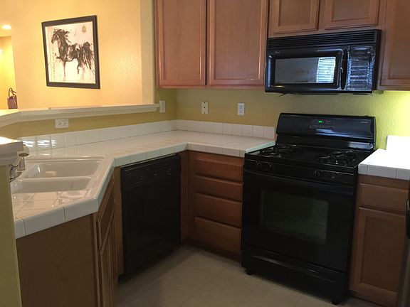 Single level living, in a centrally located gated community. Spacious two bedrooms with two full baths, vaulted ceilings, fireplace, and huge balcony. All appliances are included. Community facilities include; playground, BBQ, and children's playground. All within minutes from the freeways. Tenant pays all utilities- Must make 2.5 times the rent amount combined house hold income